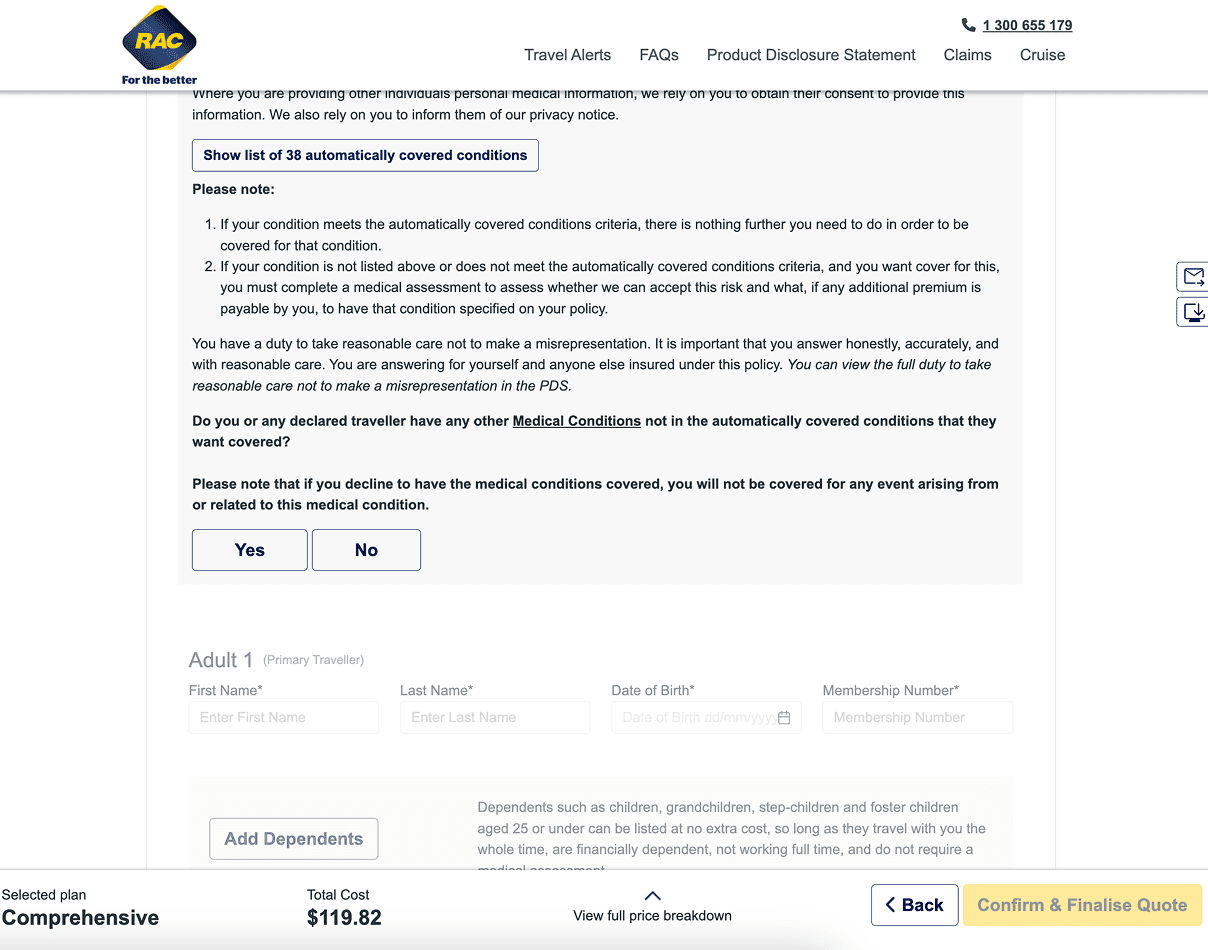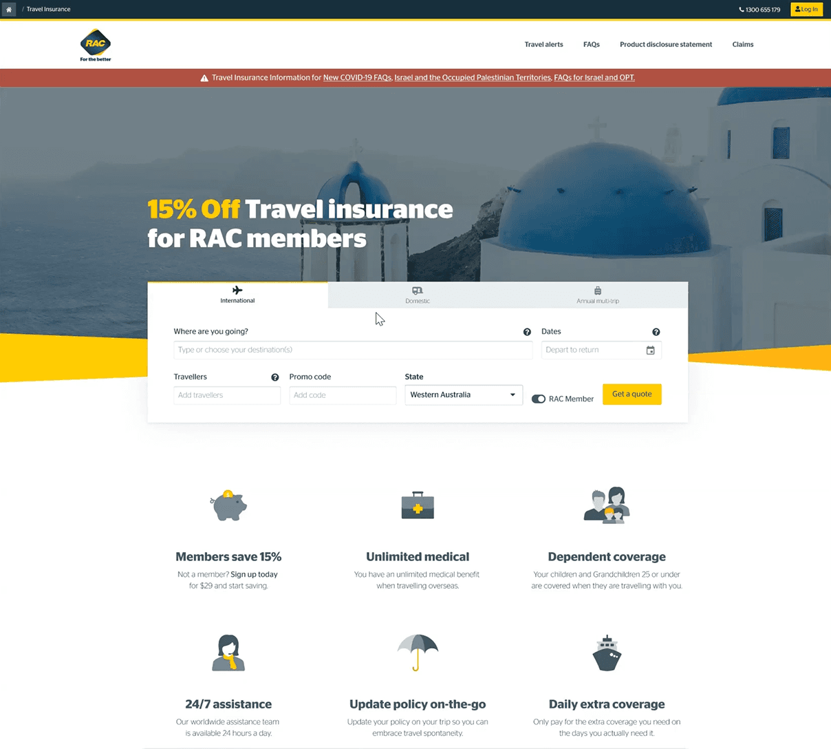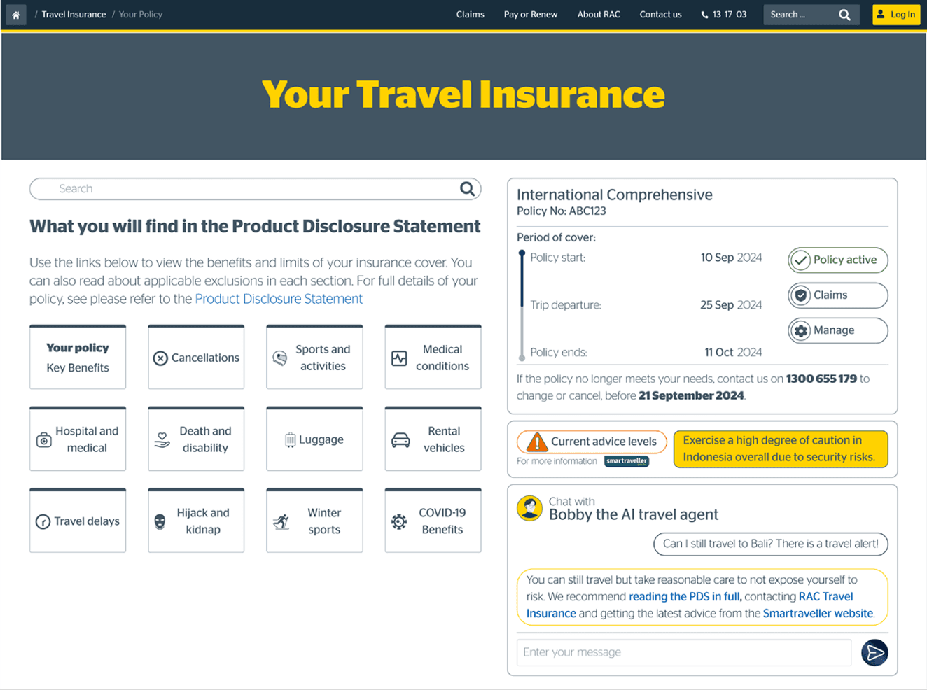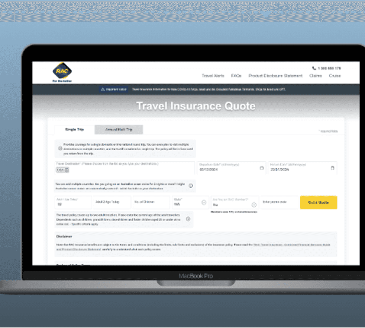 National Scalability: The success of this redesign prompted the underwriter to facilitate collaboration amongst other RACs across Australia. These design solutions are now being adapted as a standard for travel insurance experiences nationwide.